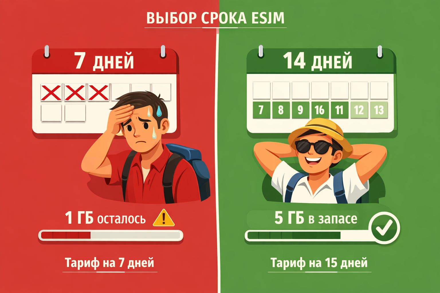 Типичная ситуация: человек едет на 10 дней и покупает недельный тариф. На восьмой день интернет заканчивается. Нужно искать WiFi, заходить на сайт, оформлять еще одну eSIM, устанавливать новый профиль. В результате два коротких тарифа обходятся заметно дороже одного длинного.